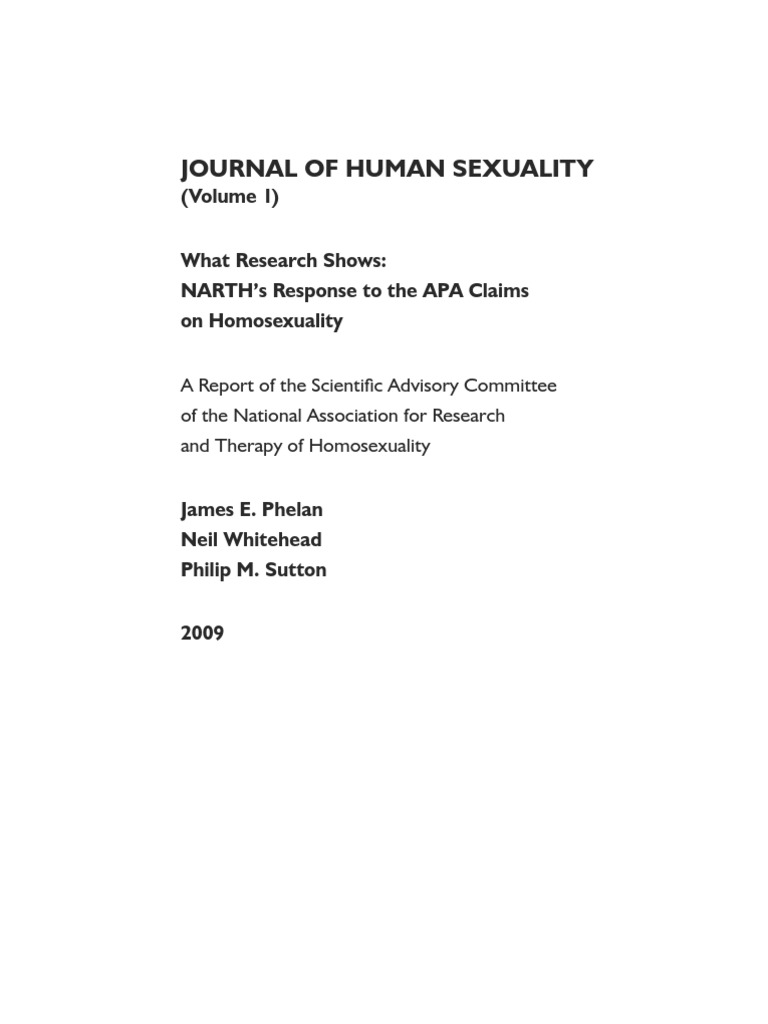 George A. Rekers, Ph.D., ABPP, University o South Carolina School o Medicine James E. Phelan, M.S.W., Columbus, OhioNeil Whitehead, Ph.D., Whitehead Associates, Lower Hutt, New ZealandDavid Wood, Ph.D., Elburn, Illinois