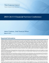 calculation of gross and net IRR, realized investments, realized proceeds, and total equity invested may differfrom Carlyle's calculation methodology.The fund return information reflected in this presentation is not indicative of the performance of The Carlyle Group L.P. and is also not necessarily indicative of the futureperformance of any particular fund. There can be no assurance that any of