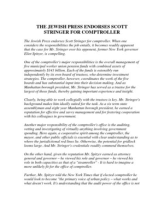 THE JEWISH PRESS ENDORSES SCOTTSTRINGER FOR COMPTROLLER