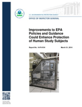 We recommend that the EPA establish procedures for obtaining HSRRO approval of significant study modifications, ensure consent forms consistently address pollutant risks, update its guidance to include the EPA’s clinical follow-up responsibilities, and address a number of other recommendations. The EPA concurred with all recommendations and provided planned corrective actions and completion dates that meet the intent of the recommendations. All recommendations have been resolved.