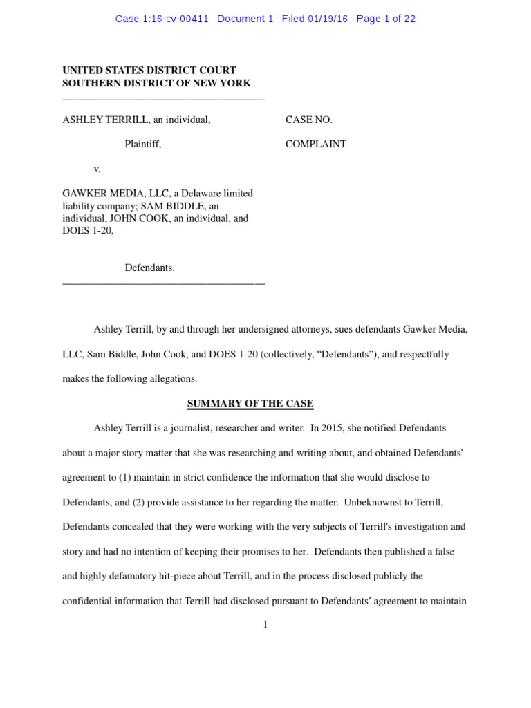 2itinstrictconfidence. Terrill promptly demanded a retraction and removal of the false anddefamatory statementsabout her,andtheconfidential informationthat she had disclosed toDefendants. Defendants refused