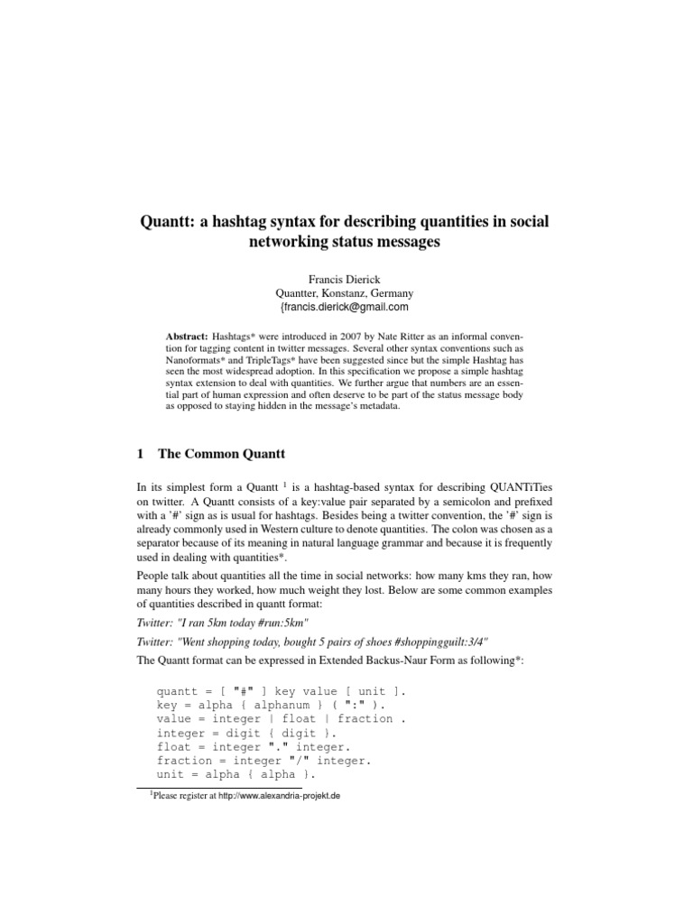 The quantt syntax is compatible with most major social media platforms, easy for humansto understand and straightforward for machines to parse. This simple Quantt syntax is alsoprobably the first syntax introduced to the general public with a cartoon.*