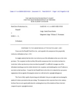 Comes now the Plaintiff, Hard Drive Inc., and responds to the anonymous letter purportedlywritten by a defendant on June 1, 2011.It is highly unlikely that this letter was written by one of the defendants in this case as the writer proclaims. The complaint was filed on May 20th and the anonymous letter was written less than twoweeks later, before any discovery action was taken by plaintiff. It is difficult to imagine one of thedefendants stumbling across the exhibit attached to the complaint, and identifying their own IP address asone listed, in that timeframe. Counsel for the Plaintiff believes the letter to be submitted by a pro-piracyorganization with an agenda of keeping the internet as a safe-haven for copyright infringement.The Court is fully capabl