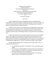 e not stopping there. One of our highest priorities at RIAA is to develop theinfrastructure that will make it faster and easier for entrepreneurs to offer even moreinnovative business models to music fans.Just last month, we announced, along with my colleague David Israelite of NMPA anddigital music services, a groundbreaking licensing agreement that will make it easier for digitalservices to clear publishing rights for five categories of new business models.