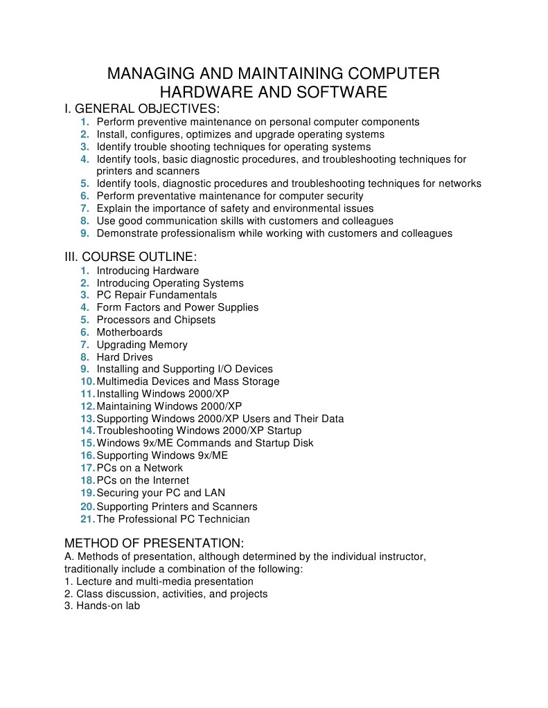 MANAGING AND MAINTAINING COMPUTER HARDWARE AND SOFTWARE