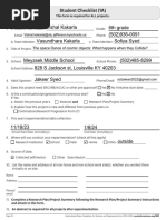 To be completed by the Adult Sponsor in collaboration with the student researcher(s): Students Name(s): Project Title: 1) o I have reviewed the Intel ISEF Rules and Guidelines. 2) o have reviewed the students completed Student Checklist (1A) and Research Plan. I 3) o have worked with the student and we have discussed the possible risks involved in the project. I 4) o project involves one or more of the following and requires prior approval by an SRC, IRB, IACUC or IBC: The o Humans Potentially Hazardous Biological Agents o Vertebrate Animals o Microorganisms o rDNA o Tissues 5) o Items to be completed for ALL PROJECTS o Adult Sponsor Checklist (1) o Student Checklist (1A)