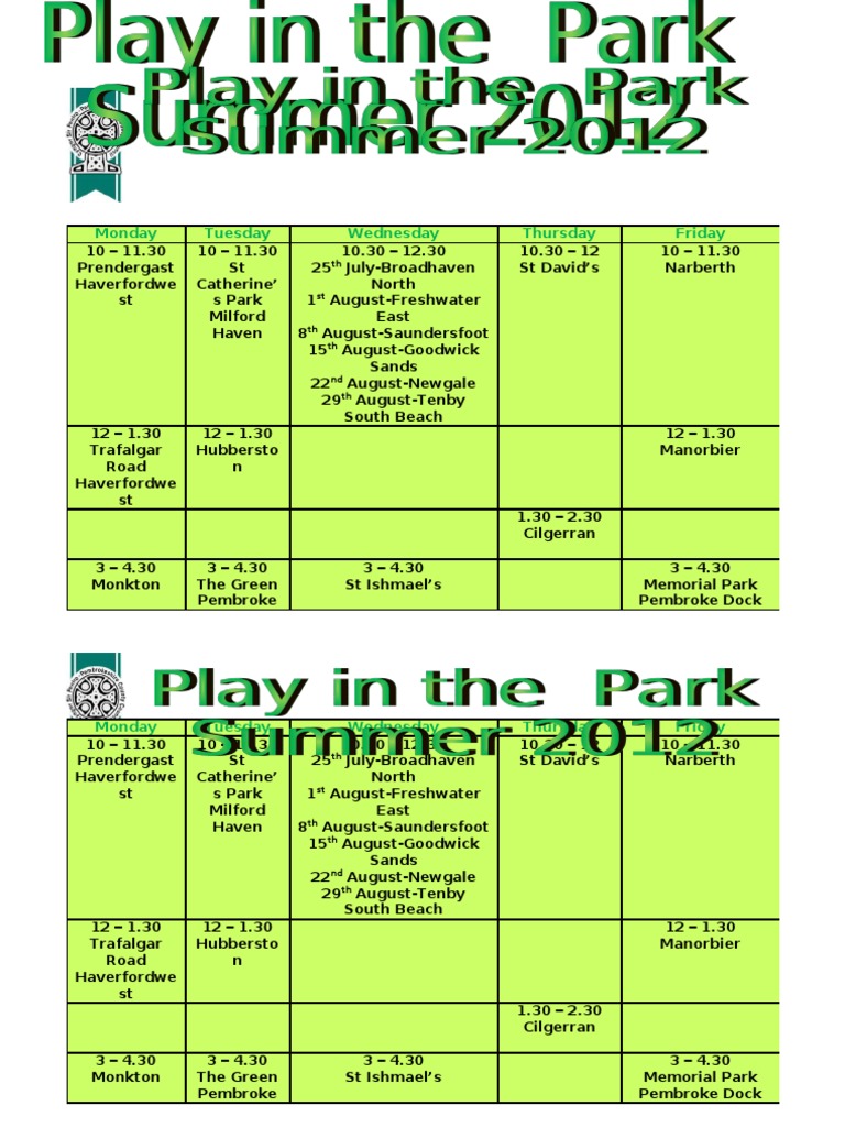 Tuesday 10 11.30 St Catherine s Park Milford Haven