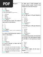 [Link] is the output state of an AND gate if the inputs are 0 and 1? a.0 b.1 c.3 d.2 13.A NOT gate has a. Two inputs and one output b. One input and one output c. One input and two outputs d. none of above [Link] OR gate has a. Two inputs and one output b. One input and one output c. One input and two outputs d. none of above [Link] output of a logic gate can be one of two _____? a. Inputs b. Gates [Link] d. none [Link] states can only be ___ or 0. a. 3 b. 2 c.1 d.0 [Link] output of a ____ gate is only 1 when all of its inputs are 1 a. NOR b. XOR c. AND d. NOT 18.A NAND gate is equivalent to an AND gate plus a . gate put together. a. NOR b. NOT c. XOR d. none [Link] adder circuit is ______? a. Half of an AND gate b. A circuit to add two bits together