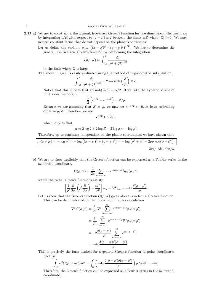 2.17 a) We are to construct a the general, free-space Greens function for two dimensional electrostatics