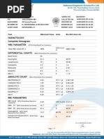 Specimen: Blood Date: August 11, 2012 Examination Red Blood Cell Hematocrit Hemoglobin White Blood Cell Stabs/ Bands Segmenters Eosinophils Basophils Lymphocyte Monocyte Platelet Count MVC MCH 0.11 0.10 185 84 28.5 0.76 0.03 Result 5.48 0.47 156 11.6 Normal Values 4.50-6x1012 /L 0.40-0.54 L 120-160 g/L 4.30-10x109/L 0-0.05 0.50-0.70 0-0.05 0-0.01 0.20-0.40 0-0.07 150-400x109 /L 80-100 fl 26-34 pg