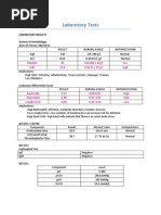 Specimen: Body Fluids Date: August 11, 2012 Examination Alkaline Phosphatase Direct Bilirubin Indirect Bilirubin Total Bilirubin Result 187 366.6 262.5 629.1 Normal Values 38-126 U/L 0-5 umol/L 0-19 U/L 3-22 umol/L
