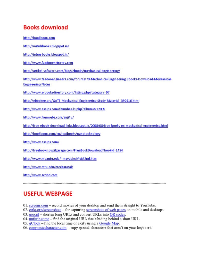 07. [Link] a better search engine for twitter. 08. [Link] create flowcharts, network diagrams, sitemaps, etc. 09. [Link] the best place to find icons of all sizes. 10. [Link] download templates, clipart and images for your Office documents. 11. [Link] the easiest way to setup email reminders. 12. [Link] scan any suspicious file or email attachment for viruses. 13. [Link] gets answers directly without searching see more wolfram tips. 14. [Link] print web pages without the clutter. 15. [Link] reformats news articles and blog content as a newspaper. 16. [Link]/rss a search engine for RSS feeds. 17. [Link] a simple online timer for your daily needs. 18. [Link] if a site is down due to heavy traffic, try accessing it through coral CDN. 19. [Link] pick random numbers, flip coins, and more. 20. [Link] lets you can quickly edit PDFs in the browser itself. 21. [Link] Preview PDFs and Presentations directly in the browser. 22. [Link] simultaneously upload videos to YouTube and other video sites. 23. [Link] your virtual whiteboard. 24. [Link] share you email address online without worrying about spam. 25. [Link] now get read receipts for your email. 26. [Link] visualize and compare the size of any product. 27. [Link]/WhatTheFont quickly determine the font name from an image. 28. [Link]/webfonts a good collection of open source fonts. 29. [Link] find data hidden in your photographs see more EXIF tools. 30. [Link] broadcast events live over the web, including your desktop screen. 31. [Link] helps you search domains across all TLDs. 32. [Link] design from scratch or re-model your home in 3d. 33. [Link] share you screen with anyone over the web. 34. [Link] recognize text from scanned PDFs see other OCR tools. 35. [Link] Track flight status at airports worldwide. 36. [Link] for sharing really big files online. 37. [Link] best-sellers that are currently free. More ways to download free Kindle books. 38. [Link] check your writing for spelling or grammatical errors. 39. [Link] easily highlight the important parts of a web page for sharing. 40. [Link] work on the same document with multiple people. 41. [Link] planning an event? find a date that works for all. 42. [Link] a less confusing view of the world time zones. 43. [Link] the perfect tool for measuring your site performance online. 44. [Link] print music sheets, write your own music online (review). 45. [Link] chat with your buddies on Skype, Facebook, Google Talk, etc. from one place. 46. [Link] translate web pages, PDFs and Office documents. 47. [Link] create paintings and sketches with a wide variety of brushes. 48. [Link] discover new sites that are similar to what you like already. 49. [Link] quick summarize long pieces of text with tag clouds.