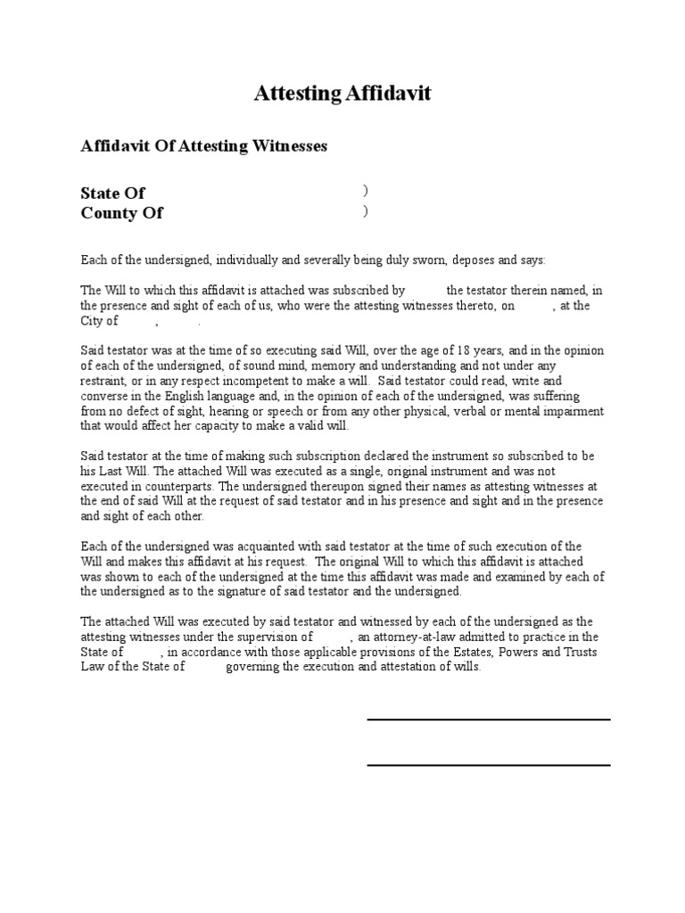 Will and makes this affidavit at his request. The original Will to which this affidavit is attached
