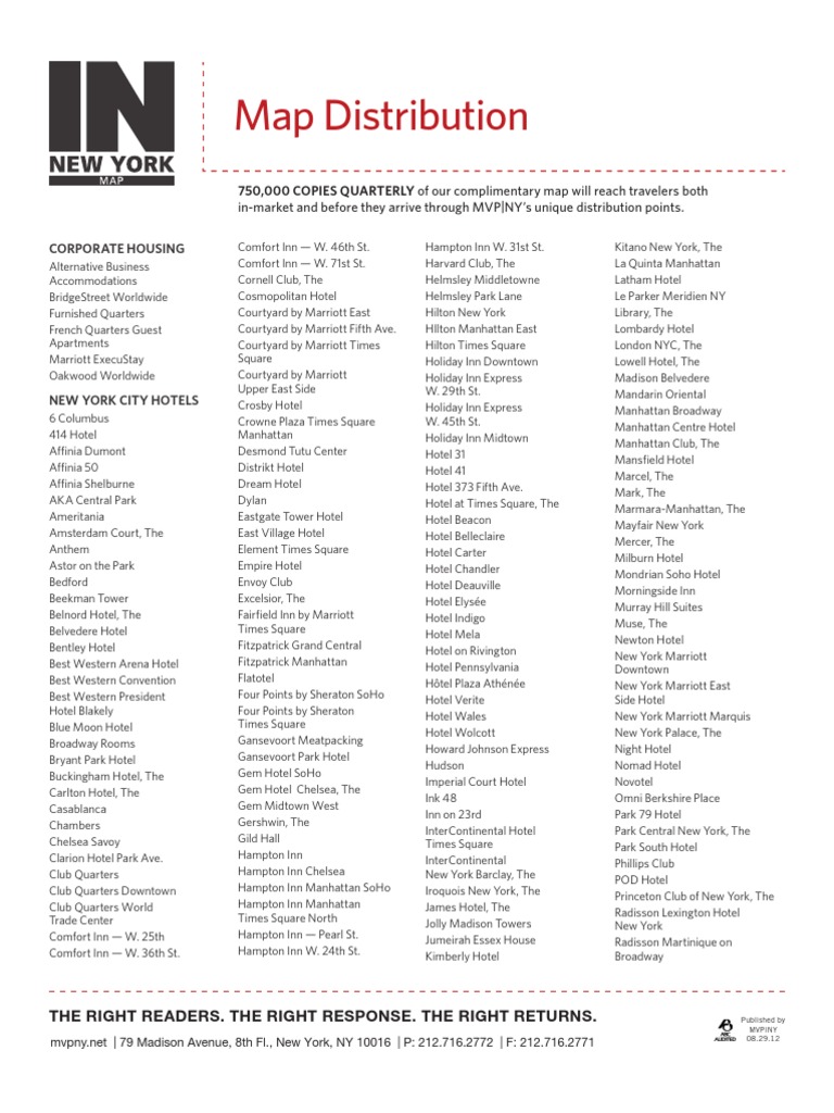 750,000 Copies Quarterly of our complimentary map will reach travelers both in-market and before they arrive through Mvp|nys unique distribution points. Corporate Housing