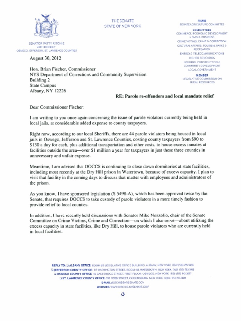 Save Mandate Relief Letter Re Parole Reoffenders For Later