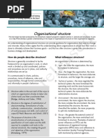 The structure of the organisation describes the functions, tasks and authorities of the departments, divisions and individual employees and the relationships between them (line of command, communication and procedures). It also describes the number of employees in each division, unit and department. On the one hand the structure divide departments, divisions and individuals on basis of tasks, functions and authorities. On the other hand the structure coordinates these units through lines of communication and command. Only when the different units work in conjunction, the organisation is able to function as a whole. The organisation structure has to facilitate the different processes in the organisation. A general rule of the thumb is that the organisation structure should enhance the progress of the processes. It is not recommendable to breakdown processes unnecessarily because of the structure of the organisation. The structure has to provide coordination mechanism if the process is divided over more units. This document provides descriptions of typical structures and some guidelines for designing structures.