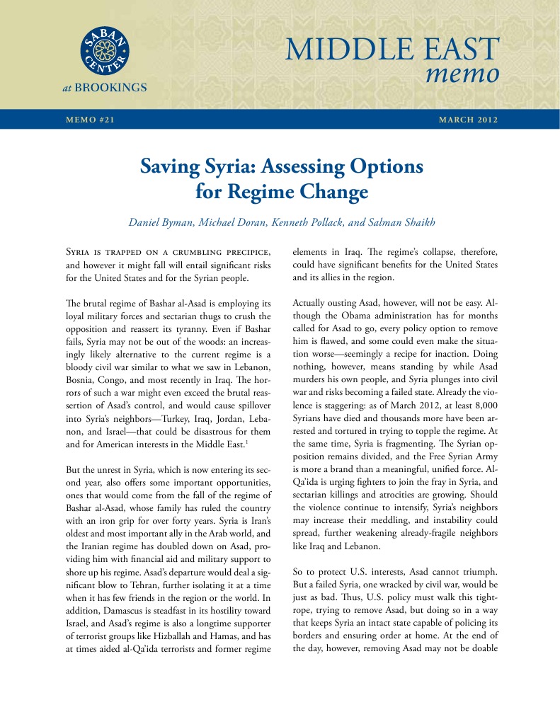 Saving Syria: Assessing Options for Regime Change