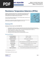 RTDs are generally characterized by their base resistance at 0C. Typical base resistance values available for platinum thin-film RTDs include 100, 500 and 1000. For other element types, typical base values include 120 for nickel, and 1000 and 2000 for Balco. The resistance versus temperature relationship for a platinum thin-film RTD follows the following equation over its operating temperature range: t(ITS-90) Equation (C) <0C Rt = R0 [ 1 + At + Bt2 + Ct3 (t 100)] >0C Rt = R0 [ 1 + At + Bt2]