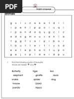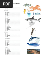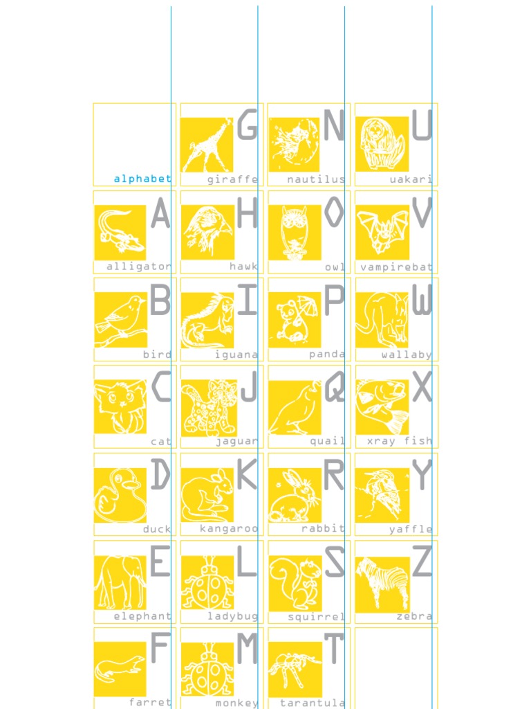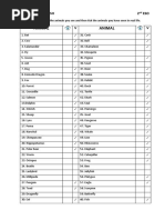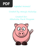 This document contains a list of animals from A to Z, with each letter corresponding to a different animal. Some of the animals listed include giraffe, nautilus, uakari, alligator, hawk, owl, vampire bat, bird, iguana, panda, wallaby, cat, jaguar, quail, xray fish, duck, kangaroo, rabbit, squirrel, zebra, farret, monkey, and tarantula.