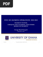 On January 16, 2010 electronic clearing of cheques was introduced under the Cheque Codeline Clearing (CCC) with truncation system with nationwide coverage. All the clearing houses were collapsed and a new national clearing house was established. This Clearing House is sited in the premises of the Ghana Interbank Payment and Settlement Systems (GhIPSS) in Accra, the capital of Ghana. GhiPSS is responsible for the management and operation of the cheque clearing system. Notwithstanding the collapse of the 11 clearing houses into one, the clearing sort codes developed on the old clearing house arrangements are still the criteria used in routing payment information to paying banks across the country. 3. Clearing Cycle The period within which a payment instrument presented for clearing receives value is referred to as the clearing cycle. Following the commencement of electronic clearing of cheques in Ghana, the clearing cycle for cheque clearing nationwide is D+1. D represents the day on which cheques are deposited with the collecting bank and the image captured electronically for transmission to the Clearing House, while 1 is the day on which clearing and settlement take place.