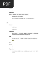 function call, the call stack overflows at runtime. So it terminates the program and results in an error. { char *cptr,c; void *vptr,v; c=10; v=0; cptr=&c; vptr=&v; printf(?%c%v?,c,v); } Answer: Compiler error (at line number 4): size of v is Unknown. Explanation: You can create a variable of type void * but not of type void, since void is an empty type. In the second line you are creating variable vptr of type void * and v of type void hence an error. { char *str1=?abcd?; char str2[]=?abcd?; printf(?%d %d %d?,sizeof(str1),sizeof(str2),sizeof(?abcd?)); } Answer: 2 5 5 Explanation: In first sizeof, str1 is a character pointer so it gives you the size of the pointer variable. In second sizeof the name str2 indicates the name of the array whose size is 5 (including the ?\0 termination character). The third sizeof is similar to the second one. { main() main() main()