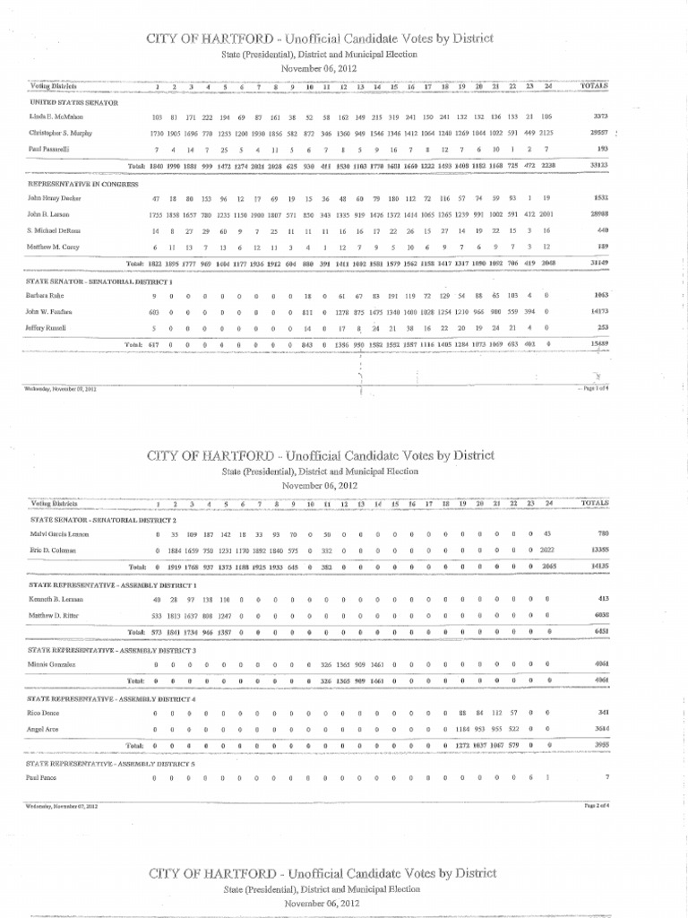 Hartford Unofficial Election Results