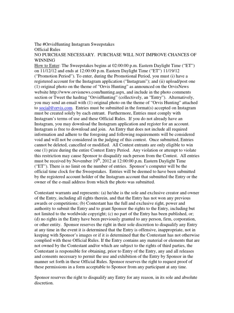 #OrvisHunting Instagram Photo Contest Rules