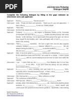 Complete the following dialogue by filling in the gaps between an interviewer and a job applicant.