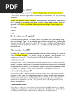Applicant: Good afternoon. How do you do? have a few questions to ask you, if thats alright. Applicant: Applicant: That is fine. Certainly. I completed my degree in Business Studies at the University of Plymouth and spent the summer months travelling Europe with some friends. In the morning, I try to spend some time going to the gym, as I like to keep myself fit and healthy, and also participate with a local football team in the evening. Interviewer: That sounds wonderful. We have a gym here and we also organise company football tournaments between different branches. job? Applicant: Well, it has been great experience working as a Marketing Assistant for the past three years and feel like I am ready for a change. I learnt a great deal with my current employers but am keen to learn more within the industry. Interviewer: I see. I notice that you are commuting from Brighton and it is an hour journey to our office. If you dont mind me asking, are you willing to travel between the branches? Applicant: Absolutely, I enjoy travelling and was keen to experience more, especially when I travelled around Europe. In fact, I am planning to visit a conference at the weekend in Birmingham. Interviewer: Ohh, that sounds interesting. What conference is that? Applicant: Applicant: The conference is about B2B marketing. Actually, when I first started my previous job, I didnt know anything about business marketing. I had to basically teach myself and continuously ask questions to my boss for guidance. Essentially, I was learning the ropes. One Interviewer: Well have fun. What mistakes have you learned from? We are always looking for team members to join the football squad. So, why are you leaving your current Interviewer: So first of all, please tell me about yourself.