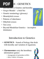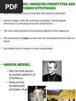 Terminologies coined: Dominant/Recessive/Traits/Factors