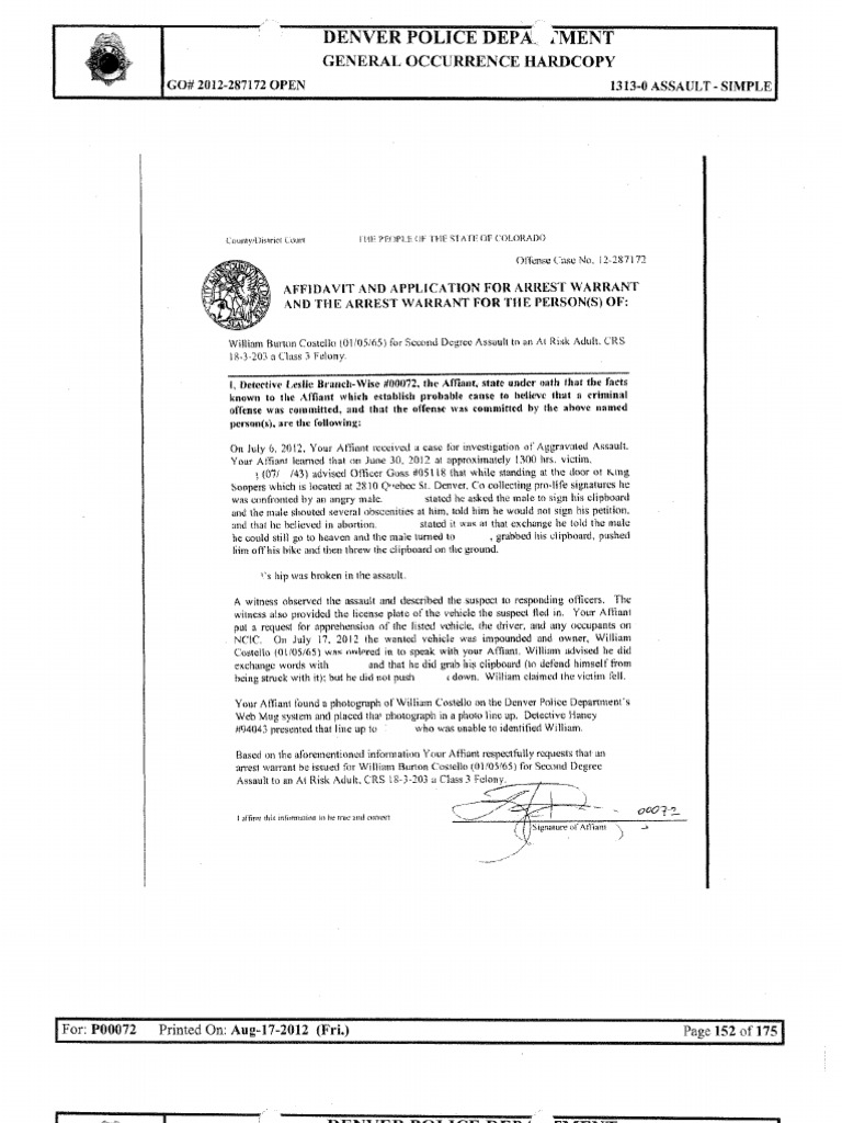 William Costello Arrest Affidavits