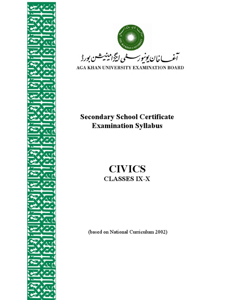 Specific Rationale of the AKU-EB Civics Examination Syllabus 2.2.1 Civics is part and parcel of life and the study of Civics has its major thrust on improvement of the quality of life and welfare of human beings. This discipline enhances the approach towards rational behaviour and daily life. 2.2.2 In response to shifting global trends and priorities in an era of scientific and technological advancements there is a continuous need to update the syllabus for teaching Civics at the secondary level. With the need to remain abreast of current developments, AKU-EB, while remaining within the ambit of the National Curriculum, has further augmented the Civics syllabus. 2.2.3 The topics added to the national syllabus are, Role of a citizen with specific reference to Global Village, the Citizen and Daily life issues, Citizenship, Rights and Responsibility, Role of Government and State, Implementation Issues of Devolution plan, Social Welfare Institutions/ NGOs and their role at basic level, social interactions and the new discoveries in IT and mass media, Relations with International Organizations e.g. U.N, OIC, ECO, SAARC, Commonwealth and Pakistan and its neighbours. These topics will serve for better understanding about different concepts of civic life and recent trends in the subject. 2.2.4 Civics goes beyond the cognitive level to deal with social values and attitudes. From the earliest stages of the course it is important to respect students opinions while helping them to develop a rationale for their opinions.