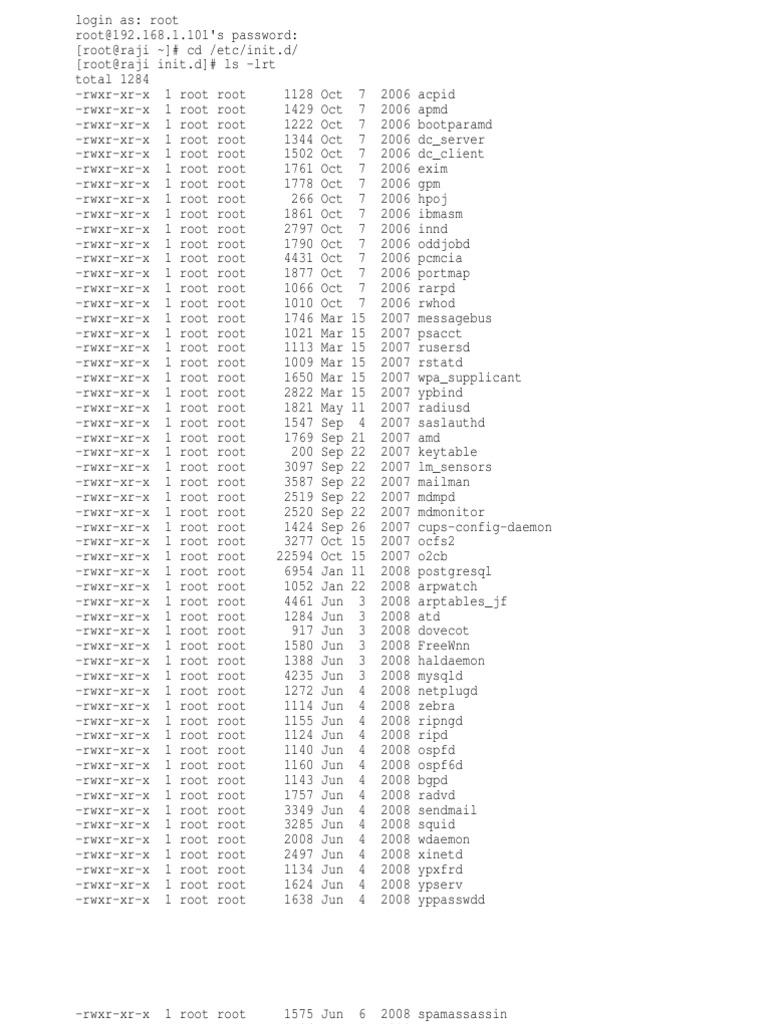 d]# ls -lrt total 1284 -rwxr-xr-x 1 root root 1128 -rwxr-xr-x 1 root root 1429 -rwxr-xr-x 1 root root 1222 -rwxr-xr-x 1 root root 1344 -rwxr-xr-x 1 root root 1502 -rwxr-xr-x 1 root root 1761 -rwxr-xr-x 1 root root 1778 -rwxr-xr-x 1 root root 266 -rwxr-xr-x 1 root root 1861 -rwxr-xr-x 1 root root 2797 -rwxr-xr-x 1 root root 1790 -rwxr-xr-x 1 root root 4431 -rwxr-xr-x 1 root root 1877 -rwxr-xr-x 1 root root 1066 -rwxr-xr-x 1 root root 1010 -rwxr-xr-x 1 root root 1746 -rwxr-xr-x 1 root root 1021 -rwxr-xr-x 1 root root 1113 -rwxr-xr-x 1 root root 1009 -rwxr-xr-x 1 root root 1650 -rwxr-xr-x 1 root root 2822 -rwxr-xr-x 1 root root 1821 -rwxr-xr-x 1 root root 1547 -rwxr-xr-x 1 root root 1769 -rwxr-xr-x 1 root root 200 -rwxr-xr-x 1 root root 3097 -rwxr-xr-x 1 root root 3587 -rwxr-xr-x 1 root root 2519 -rwxr-xr-x 1 root root 2520 -rwxr-xr-x 1 root root 1424 -rwxr-xr-x 1 root root 3277 -rwxr-xr-x 1 root root 22594 -rwxr-xr-x 1 root root 6954 -rwxr-xr-x 1 root root 1052 -rwxr-xr-x 1 root root 4461 -rwxr-xr-x 1 root root 1284 -rwxr-xr-x 1 root root 917 -rwxr-xr-x 1 root root 1580 -rwxr-xr-x 1 root root 1388 -rwxr-xr-x 1 root root 4235 -rwxr-xr-x 1 root root 1272 -rwxr-xr-x 1 root root 1114 -rwxr-xr-x 1 root root 1155 -rwxr-xr-x 1 root root 1124 -rwxr-xr-x 1 root root 1140 -rwxr-xr-x 1 root root 1160 -rwxr-xr-x 1 root root 1143 -rwxr-xr-x 1 root root 1757 -rwxr-xr-x 1 root root 3349 -rwxr-xr-x 1 root root 3285 -rwxr-xr-x 1 root root 2008 -rwxr-xr-x 1 root root 2497 -rwxr-xr-x 1 root root 1134 -rwxr-xr-x 1 root root 1624 -rwxr-xr-x 1 root root 1638