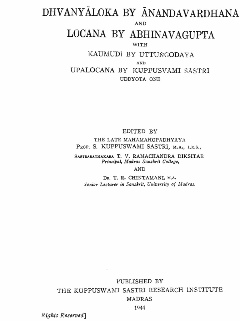 Save Dhvanyaloka Kuppuswami sastri For Later