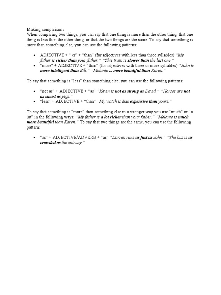 Making comparisons When comparing two things, you can say that one thing is more than the