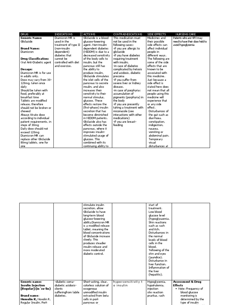 DRUG Generic Name: Gliclazide Brand Name: Diamicron Drug Classification: Oral Anti-Diabetic agent Dosage: Diamicron MR is for