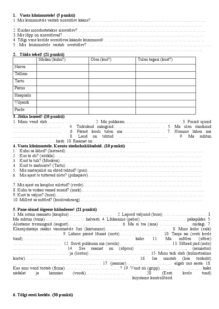 4. Vasta ksimustele. Kasuta sisekohakndeid. (10 punkti)