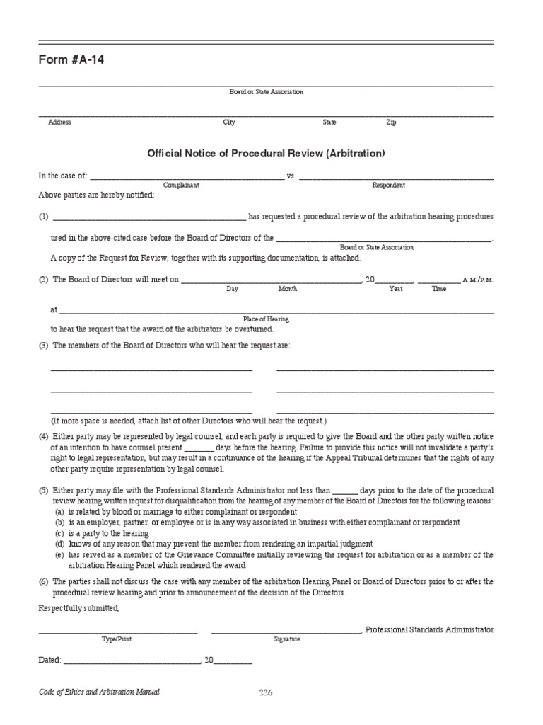 (5)Either party may file with the Professional Standards Administrator not less than ______ days prior to the date of the procedural