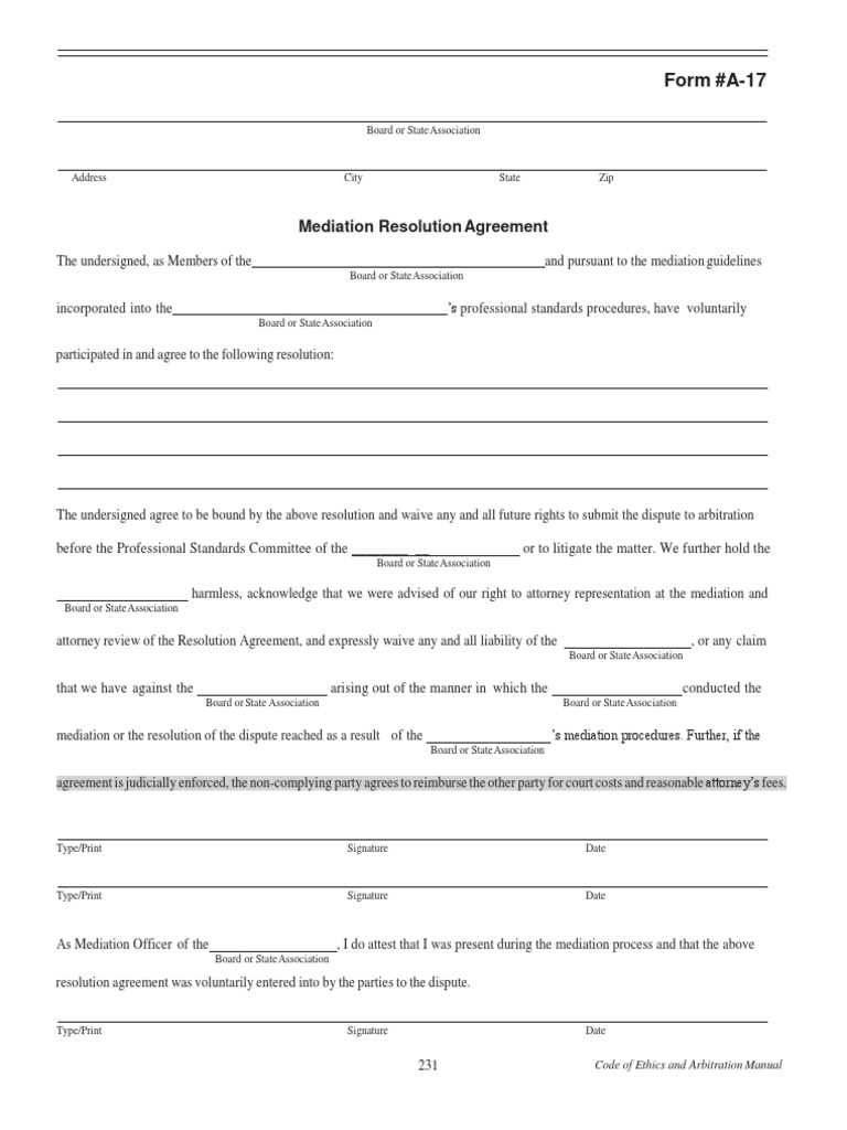 mediation or the resolution of the dispute reached as a result of the ’s mediation procedures. Further, if the