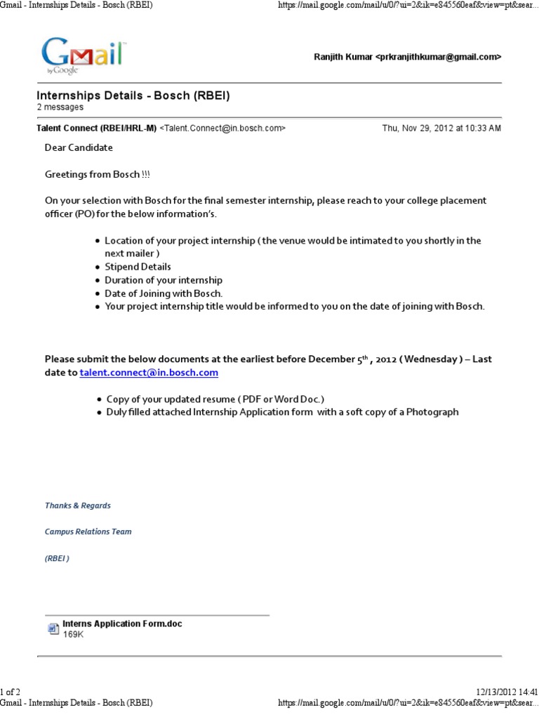 Gmail - Internships Details - Bosch (RBEI)