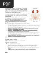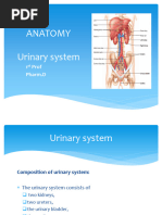 The Human Renal System The human renal system is made up of two kidneys, two ureters, the urinary bladder, and the urethra. In addition to the production of urine the renal system has many other functions. One quarter to one fifth of cardiac output passes through the kidneys at all times. This means that the kidneys filter approximately 1.2 liters of blood every minute. It is therefore not surprising that even slight abnormalities of renal function quickly lead to electrolyte disturbances. If untreated death will occur.