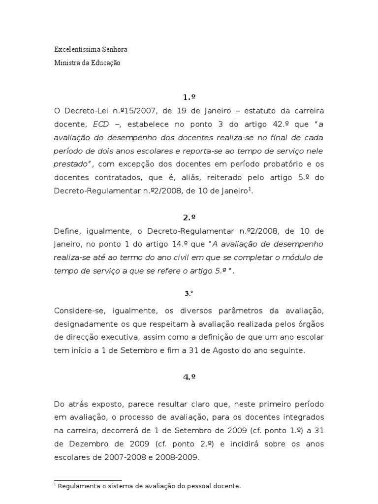 O Decreto-Lei n.º15/2007, de 19 de Janeiro – estatuto da carreira