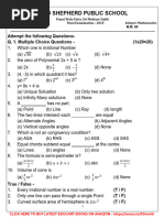 AC 1 = cos 60 = BC 2 BC= 2 x AC = (2 x 4.6) m = 9.2 m. 19.) A hollow iron pipe is 21 cm long and its external diameter is 8 cm. If the thickness of the pipe is 1 cm and iron weighs 8 g/cm3, then the weight of the pipe is: A.3.6 kg C.36 kg Answer: Option B Explanation: External radius = 4 cm, Internal radius = 3 cm. 2 = 2 x [(4)2 - (3)2] x21 Volume of iron cm3 7 2 x 7 x 1 x = 2 21 cm3 7 = 462 cm3. Weight of iron = (462 x 8) gm = 3696 gm = 3.696 kg. 20.)Evaluate : A.2 C.6 (2.39)2 - (1.61)2 2.39 - 1.61 B.4 D.8 B.3.696 kg D.36.9 kg