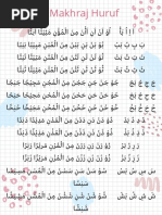 The document provides instructions for practicing pronunciation of letters in the Arabic alphabet. It lists each letter of the alphabet and provides an example word for that letter, showing the pronunciation of just that letter in isolation as well as within a word. The purpose is to help learn proper recitation and pronunciation of individual Arabic letters.