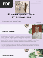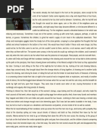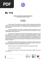 I shall go to town and bring Doctor Santos, he decided, his cool hand on his wifes brow. Soledad opened her eyes. Dont, Indo, she begged with a vague terror in her eyes which he took for anxiety for him because the town was pretty far and the road was dark and deserted by that hour of the night. I shall be alright tomorrow. Pedro returned an hour later, very tired and very worried. The doctor was not at home but his wife had promised to give him Pedros message as soon as he came in. Tia Maria decide to remain for the night. But it was Pedro who stayed up to watch the sick woman. He was puzzled and worried more than he cared to admit it. It was true that Soledad did not looked very well early that afternoon. Yet, he thought, the fever was rather sudden. He was afraid it might be a symptom of a serious illness. Soledad was restless the whole night. She tossed from one side to another, but toward morning she fell into some sort of troubled sleep. Pedro then lay down to snatch a few winks. He woke up to find the soft morning sunshine streaming through the half-open window. He got up without making any noise. His wife was still asleep and now breathing evenly. A sudden rush of tenderness came over him at the sight of her so slight, so frail. Tia Maria was nowhere to be seen, but that did not bother him, for it was Sunday and the work in the south field was finished. However, he missed the pleasant aroma which came from the kitchen every time he had awakened early in the morning. The kitchen was neat but cheerless, and an immediate search for wood brought no results. So shouldering an ax, Pedro descended the rickety stairs that led to the backyard. The morning was clear and the breeze soft and cool. Pedro took in a deep breath of air. It was good it smelt of trees, of the ricefields, of the land he loved. He found a pile of logs under the young mango tree near the house and began to chop. He swung the ax with rapid clean sweeps, enjoying the feel of the smooth wooden handle in his palms. As he stopped for a while to mop his brow, his eyes caught the remnants of a smudge that had been built in the backyard. Ah! he muttered to himself. She swept the yard yesterday after I left her. That, coupled with the heat, must have given her a headache and then the fever. The morning breeze stirred the ashes and a piece of white cloth fluttered into view.