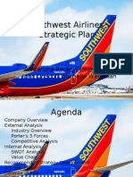 Southwest is the leading low-fare, no-frills, U.S. carrier. The company was founded in 1967 as a Texas-based airline to serve Dallas, Houston, and San Antonio. The airline now flies to more than 63 cities across the United States. In 2006, Southwest reported a $499 million profit and net sales of $9.86 billion. Exhibit 5 compares key financial data for the major airlines. In 2005, America Wests CEO, Douglas Parker, described Southwest as follows: They really were at one point the scrawny kid who was lifting weights in his basement. Now they come out and theyre bigger than anybody else and stronger than anybody else. Southwests strategy emphasizes low costs; the firm was the first to sell tickets online and to introduce unsigned seating. It operates a single aircraft fleet of 481 Boeing 737s. The Company Case Analysis Strategic Management BMGMT3202