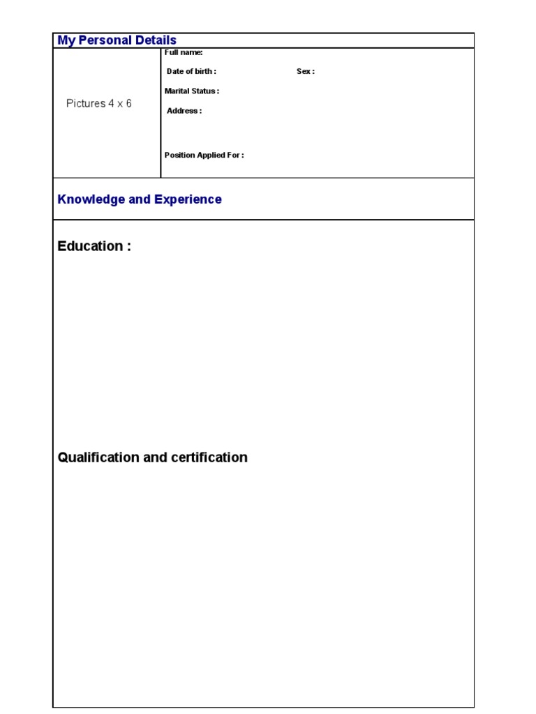 Name: Address: Date employed: Position hired into : The next promoted position: Current position: Key Responsibilities and work description :