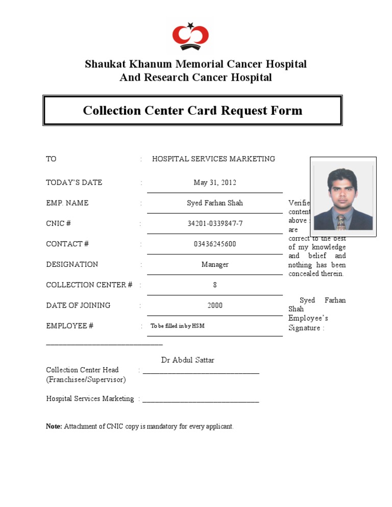 HOSPITAL SERVICES MARKETING May 31, 2012 Syed Farhan Shah 34201-0339847-7 03436245600 Manager 8 2000