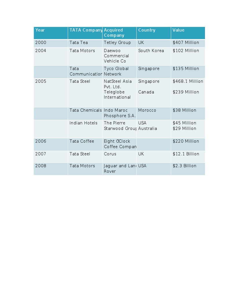 TATA Company Acquired Company Tata Tea Tata M otors Tetley Group Daewoo Commercial Vehicle Co