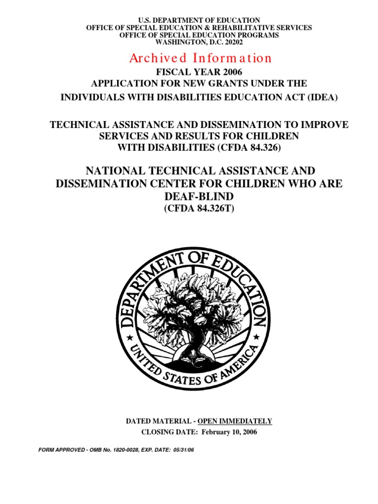 program--National Technical Assistance and Dissemination Center for Children who are Deaf-Blind